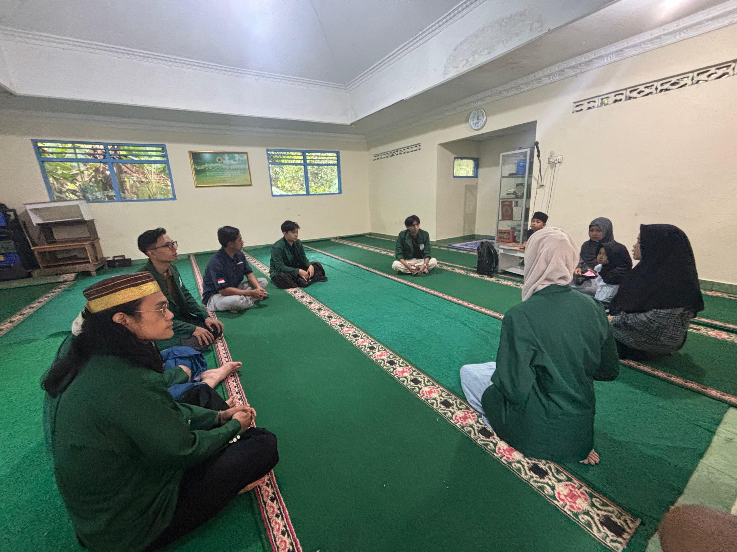 Dalam pelaksanaannya, mahasiswa KKN 119 tidak hanya sekadar menyimak bacaan Iqra’ atau Al-Qur’an, tetapi juga menerapkan metode pembelajaran yang interaktif. Terlihat dalam dokumentasi kegiatan, para mahasiswa duduk melingkar di atas karpet hijau masjid, menciptakan suasana diskusi yang hangat dan dekat dengan anak-anak maupun remaja masjid.
