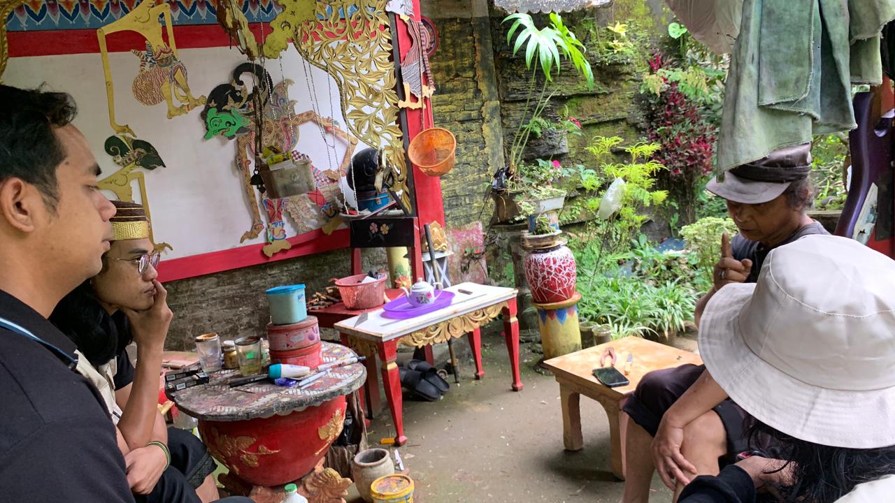 Dialog budaya ini berlangsung hangat di kediaman Pak Jumaryanto, di mana nuansa seni sangat kental terasa. Dalam dokumentasi kegiatan, para mahasiswa tampak duduk bersila mendengarkan penuturan sang tokoh dengan saksama, berlatarkan dinding yang dihiasi oleh karya seni wayang kulit dan berbagai perlengkapan kriya tradisional.